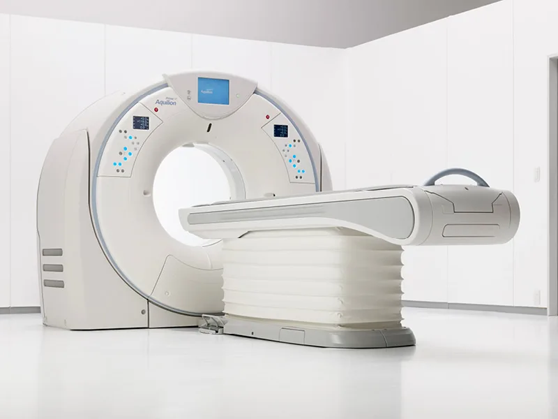 Die Computertomographie (CT) ist ein modernes Schnittbildverfahren zur Darstellung innerer Organe, das mit Hilfe von Röntgenstrahlung innerhalb weniger Sekunden besonders detaillierte und hoch aufgelöste Bilder in verschiedenen Ebenen ermöglicht. Unser Computertomograph Aquilion Prime SP der Firma Canon ist ein hochmodernes 80-Zeilen Spiral-CT, das neben einer sehr hohen Qualität auch eine stark verminderte Strahlenbelastung aufweist.
